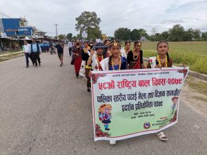 “बालमैत्री समाजको आधार :जिम्मेवार परिवार, उत्तरदायी सरकार” भन्ने मुलनाराका साथ ५८औं राष्ट्रिय बाल दिवस गढवामा मनाईएको छ। गढवा गाउँपालिका प्रमुख यमनरायण शर्मा पोख्रेलको अध्यक्षता तथा लुम्बिनी प्रदेशका स्वास्थ्य तथा जनसङ्ख्या मन्त्री इन्द्रजित थारुको प्रमुख आतिथ्य सम्पन्न कार्यक्रममा गढवा गाउँपालिकाका सामुदायिक तथा निजि विध्यालयहरुको उपस्थिति रहेको थियो । पढाई मेला प्रतियोगितामा छात्र तर्फ राप्ती साउथन इङ्ग्लिस बोर्डिङ स्कुलका रोशन भट्टराई प्रथम, बाल कल्याण आवशिय बिध्यालय बालाखुट्टीका ईरशाद खान द्वितीय र दुर्गा आवशिय विध्यालय पारस परियार तृतीय स्थान हाँसिल गरेका थिए।