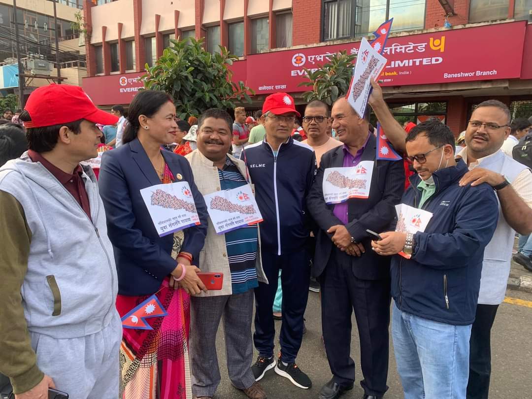काठमाडौं । नेकपा एमालेले संविधान दिवसको अवसर पारेर आज बिहान काठमाडौं वाकाथन अर्थात बिहानी पैदलयात्रा गरेको छ । बिहान ७ बजेदेखि बानेश्वर, मैतिदेवी, लैनचौर, कालीमाटी र ललितपुरको कुपण्डोलबाट सुरू भएको पदयात्रा वसन्तपुरमा गएर टुङ्गिएको हो।