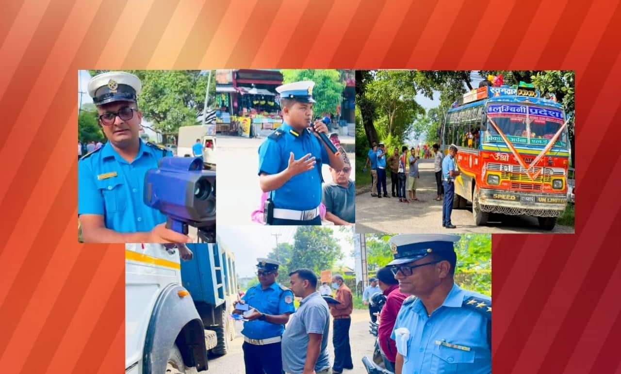 दाङ । जिल्ला ट्राफिक प्रहरी कार्यालय दाङले तीव्र गतिका कारण दुर्घटना बढ्न थालेपछि दुर्घटना न्यूनीकरण गर्न दाङमा राडर गन सहित ट्राफिक प्रहरी सडकमा खटिएको छ ।