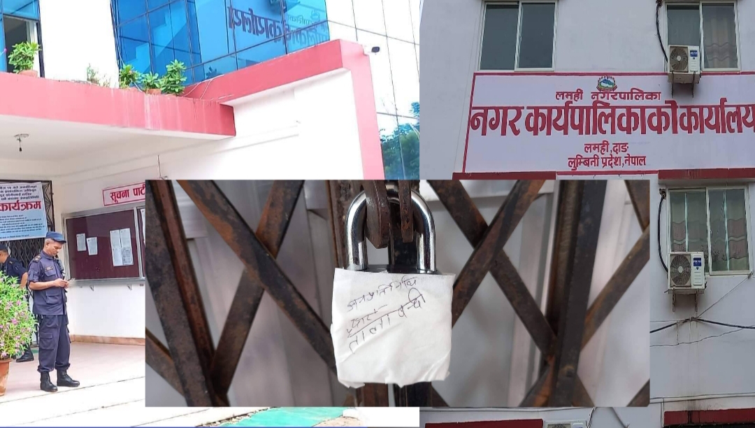 दाङ । लमही नगरपालिकाकाे कार्यालयमा तालाबन्दी भएको छ । प्रमुख प्रशासकीय अधिकृतकाे बिषयलाइ लिएर वडा अध्यक्ष तथा कार्यपालिका सदस्यहरुले नगरपालिका कार्यालयकाे मुल गेटमा तालाबन्दी गरेका हुन् ।