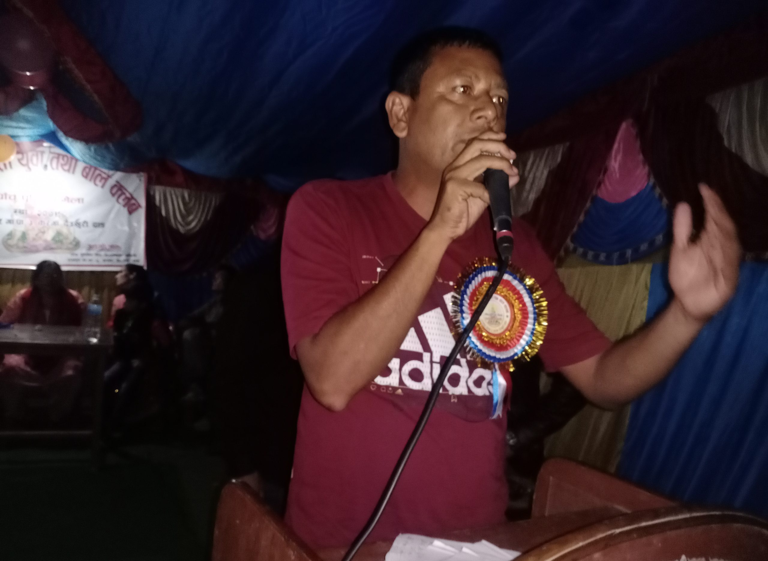 जनजाति युवा तथा बाल क्लब तथा पाँच पुर्णिामा मेला व्यवस्थापन समितिको संयुक्त आयोजनामा बुधबार राति सम्पन्न भएको एक दिने बृहत साँस्कृतिक कार्यक्रमको प्रमुख अतिथिको सिटबाट बोल्दै अध्यक्ष बुढाथोकीले राजपुरको समग्र विकास निर्माणको कार्यमा राजपुर बासि एक जुट भएर लागिपर्नु पर्ने बताउनु भयो ।