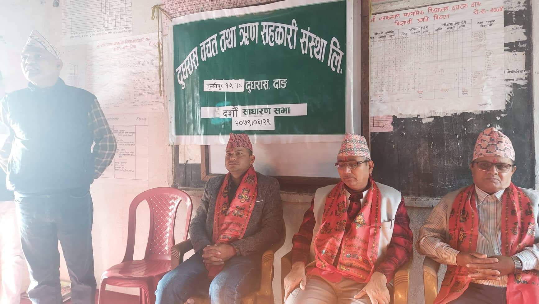 तुलसीपुर उपमहानगरपालिका वडा नम्बर १७ र १८ मा कार्यक्षेत्र रहेको दुधरास बचत तथा ऋण सहकारी संस्थाको दशौं साधारण सभाको उद्घाटन गर्दै नगर प्रमुख खड्काले सहकारीले नेपालमा पछिल्लो समयमा आर्थिक संकटसंग जुध्नका लागि सहकारीको भूमिका महत्वपूर्ण रहेको बताउनुभयो ।