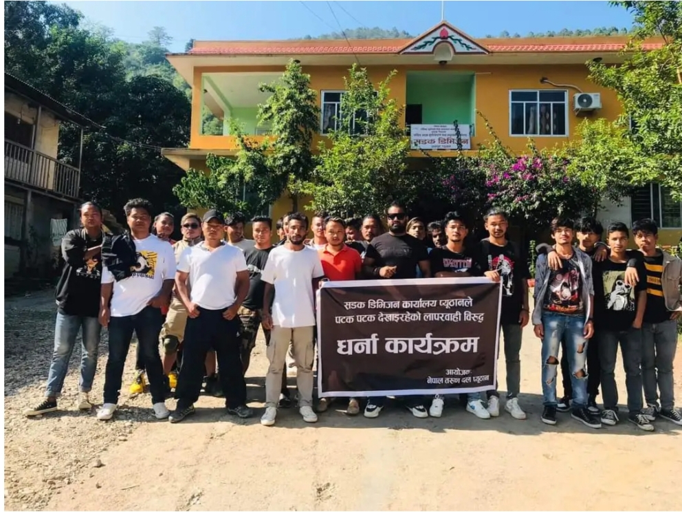 प्युठान। तरुणदलले प्युठान भालुवाङ सडकखण्ड तत्काल मर्मत गर्न माग गर्दै सडक डिभिजन कार्यालय प्युठानको ध्यानाकर्षण गराएको छ। सडक मर्मतका लागि दवाव दिन भन्दै तरुणका नेता तथा कार्यकर्ताहरुले कार्यालय अगाडि एक घण्टा धर्ना समेत दिए ।