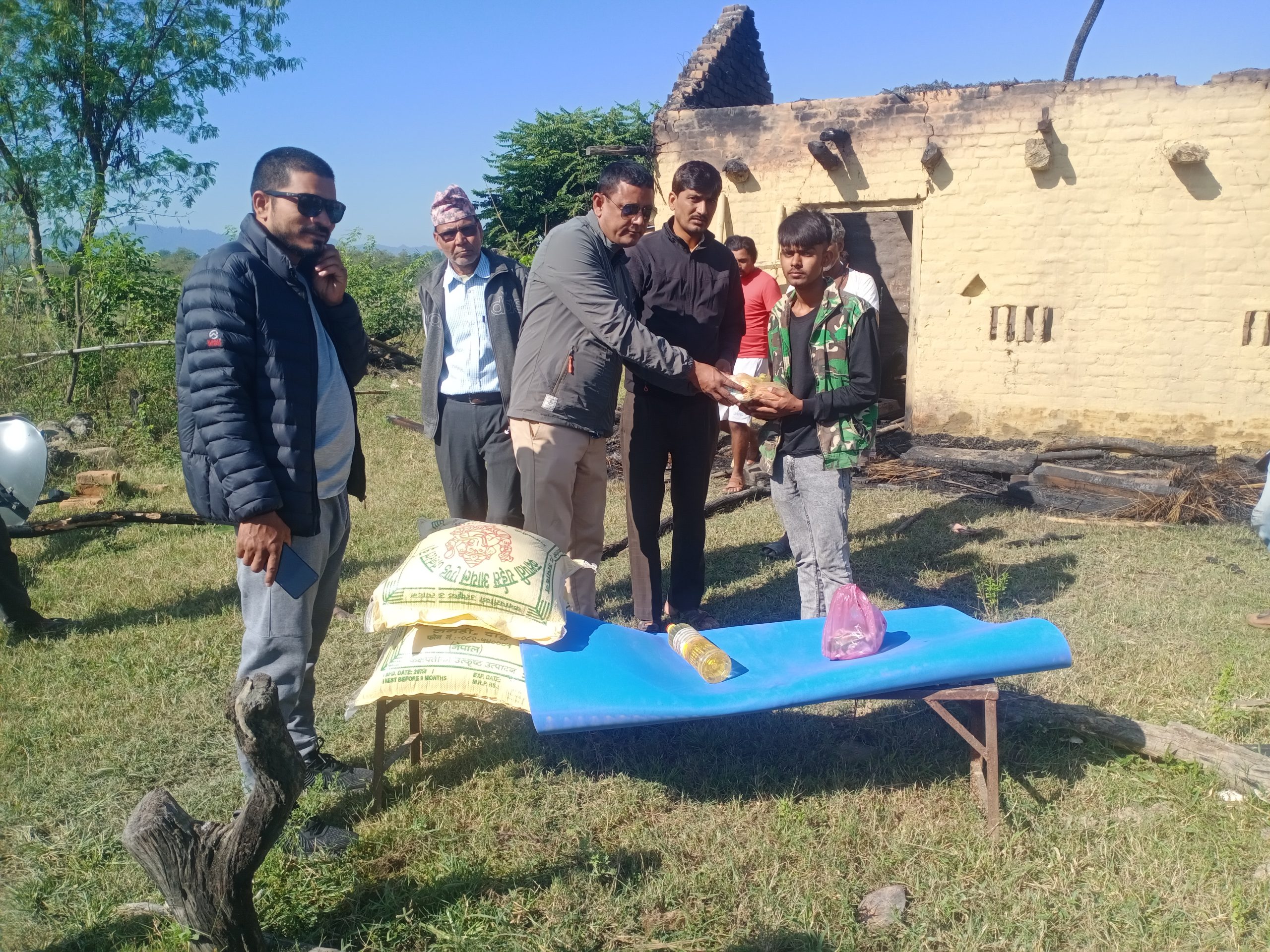 त्यस्तै सो घटना भएको खबर पाएलगत्तै राजपुर गाउँपालिका अध्यक्ष शरद कुमार बुढाथोकी आज बिहानै दैनिक आवश्यक खाद्यान्न दुई बोरा चामल, दाल,नुन,तेल म्याटिस सहित नगद २० हजार अग्नि पीडित यादवका छोरा वर्ष १६ का नरेन्द्र यादव र कान्छो छोरा वर्ष ११ का रोहित यादवलाई हस्तान्तरण गर्नु भएको छ ।