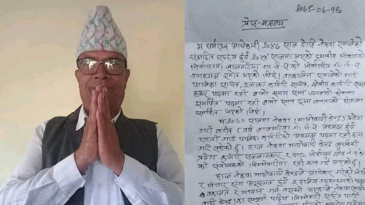 दाङ । दाङमा नेकपा माओवादी केन्द्र निर्वाचन क्षेत्र नं. १ प्रदेश सभा कमिटी १ का संयोजक धर्मराज अधिकारीले साधारण सदस्य समेत नरहनेगरी पार्टी परित्याग गरेका छन् । बुधवार एक प्रेस विज्ञप्ती जारी गर्दै अधिकारीले माओवादी परित्याग गरेको घोषणा गरेका छन् ।