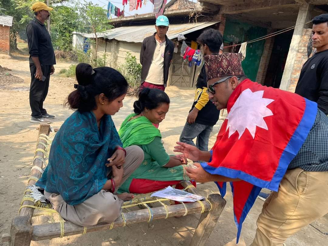 घरदैलो अभियान अन्तर्गत क्षेत्रका मतदातालाई कोदालो बोकेको किसान छापमा मतदान गरि क्षेत्रको विकास तथा किसानको भबिष्य राम्रो बनाउन अपिल गरे ।