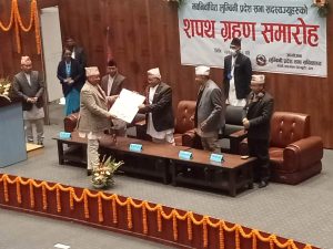 दाङ । लुम्बिनी प्रदेशसभाका सदस्यहरुले प्रदेशको स्थायी राजधानी राप्ती उपत्यका देउखुरीमा आइतबार पद तथा गोपनीयताको शपथग्रहण गरेका छन् ।