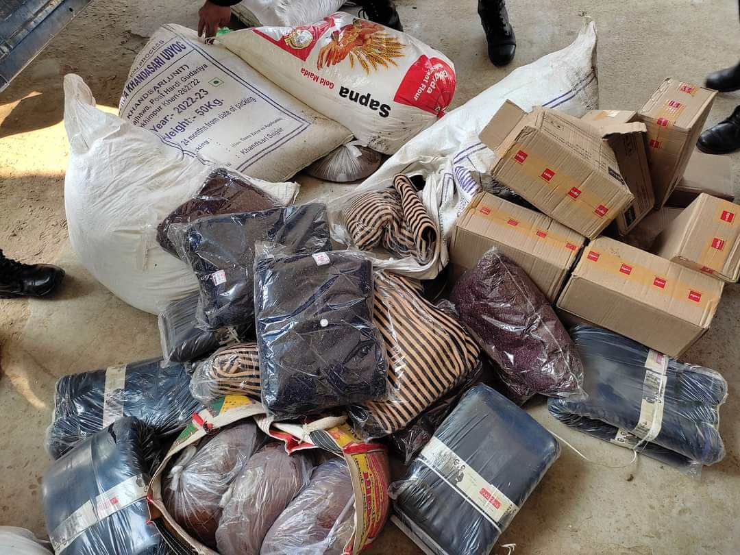 जमुनाह प्रहरीले चिनि ३ बोरा, सेलो पेन १० काटुन, सुपर पावर सुर्ति १००, जेन्स सुट कपडा ६ थान, भेलि ८० के.जि, लेडिज उनि सुट १४ पिस, पिठो २ बोरा सामना बरामद गरेको हो ।
