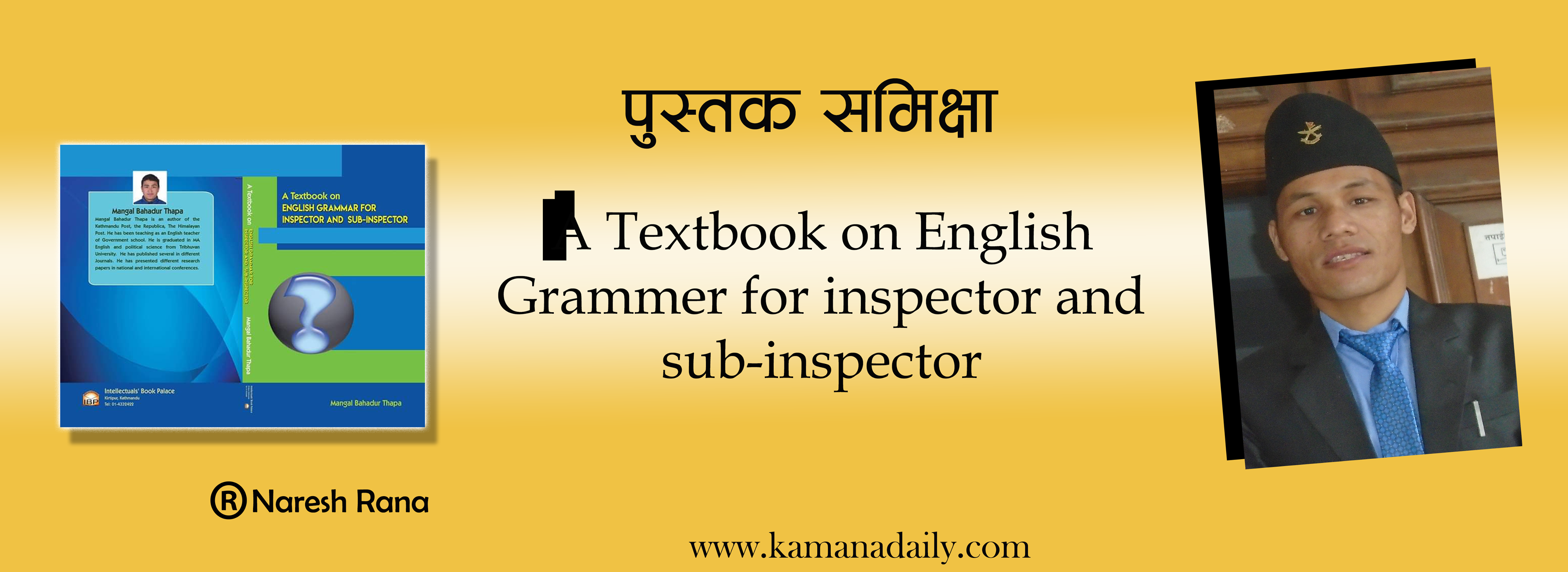 भनिन्छ, ‘भाषाको मुटु भनेकै व्याकरण हो ।’ यहीँ श्वासत उद्धरणसँग सुहाउँदो पुस्तक हो, ‘अ टेक्सटबुक अन इंलीस ग्रामर फर इन्स्पेक्टर एण्ड सब–इन्स्पेक्टर ।’ अंग्रेजी भाषामा लेखिएको यो पुस्तक अहिले विद्यार्थी, शिक्षक, प्राध्यापक र लोकसेवा आयोग तयारी गर्दै गरेकाहरूको हात–हातमा देख्न सकिन्छ । पुस्तक प्रकाशन भएको सातादिन नबित्दैँ हजारौँ प्रति बजारमा खपत भएको छ ।