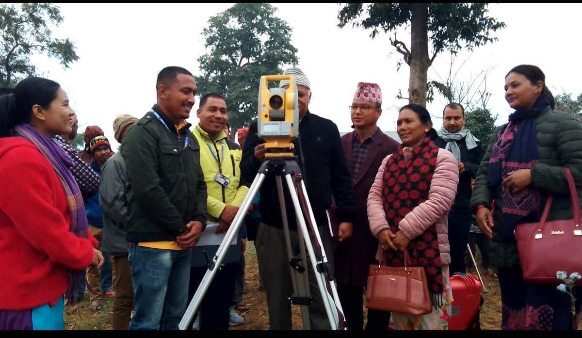 राष्ट्रिय भूमि आयोग दाङका अध्यक्ष लेखराज रेग्मीले जिपिएस प्वाइन्ट राखिएको ठाउँबाट जग्गा नाप जाँच गर्ने टाेटल स्टेसन मेसिन सञ्चालन गरि कार्यक्रमको शुरुआत गर्नु भएको हाे।
