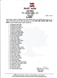 नेपाली काँग्रेसका सभापती शेर बहादुर देउवाले सोमबार काँग्रेसका केन्द्रिय सदस्य गोबिन्द भट्टराईको नेतृत्वमा नेपाली काँग्रेस जनसम्पर्क समिति समन्वय बिभागको टुङ्गो लगाउनु भएको हो । नेपाली काँग्रेसको बिधान, २०१७ (संसोधन सहित) को धारा २५ (९) बमोजिम देश तथा बिदेशबाट ३४ जना सदस्य मनोनित हुनु भएको छ ।