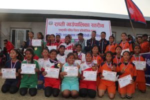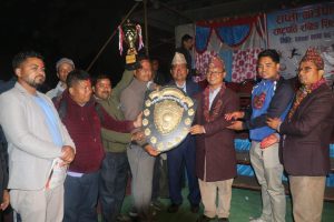 दाङ । देउखुरीको राप्ती गाउँपालिका वडा नम्बर २ लालमटियामा सञ्चालित राप्ती गाउँपालिका स्तरीय १३ औं राष्ट्रपति रनिङ सिल्ड खेलकुद प्रतियोगिताको उपाधी सर्वाेदय मावि सिसहनियाले हात पारेको छ ।