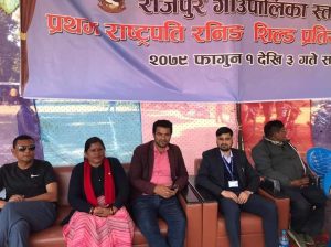 यस्तै राजपुर गाउँपालिकाका शिक्षा शाखा प्रमुख केशव लम्सालले प्रथम राष्ट्रपति रनिङ शिल्ड सुरु भएकोले आफूलाई गर्भ लागेको बताए। उनले आज राजपुर गाउँपालिका आगाडी बढेको गौरभकाे अनुभुति रहेको बताउनु भयो ।