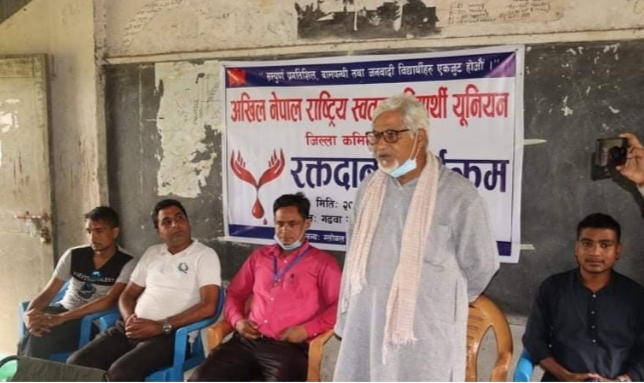 अनेरास्ववियू दाङले देउखुरीकाे गढवा गाउँपालिका वडा नं. १ कालाकाटेमा बिहीबार आयोजना गरेको रक्तदान शिविरमा प्रमुख अतिथि समेत रहनु भएका सांसद शर्माले ‘विद्यार्थी संगठनले आफ्नो स्थापना काल देखि नै रचनात्मक कार्यक्रम गर्दै आइरहेको बताउनु भयो । जनताको जन जीविकाको निमित्त संघर्षका विभिन्न मोर्चाहरुमा हामी अखिलको झण्डा लिएर हामी उभिएका थियौं’-शर्माले भन्नु भयो । ‘विद्यार्थी साथीहरु सरकार प्रति जनताको धारणा के छ ? जनअपेक्षा कस्तो छ, भनेर सर्भे गर्न सक्छौं । कतिपय बिषयमा जनमत लिन पनि सक्छौं । यो कार्यमा विद्यार्थीहरुको संलग्न हुन सक्छ, सांसद शर्माले भन्नु भयो ।
