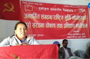 जन्ताको सपना पूरा नेपाल कम्युनिस्ट पार्टीले गर्छ। नेपालमा जनयुद्ध जितेकै हो प्रचण्डले टिक्न दिएनन् । प्रचण्डले धोका नदिएको भए यो समयमा समाजबादको परिकल्पना सुरु हुन्थ्यो । प्रचण्डले धोका दिएपनि महासचिव कमरेड विप्लवले त्यो झन्डा उठाउनु भएको छ । हामी त्यो ठाउँमा छौं । हामीले क्रान्तिलाई मर्नदिएको छैन हामीले सहिदका बाटो बिर्सिएका छैनौं । अब क्रान्तिको केन्द्र र जिम्मेवारी नेपाल कम्युनिस्ट पार्टीको काधमा आएको छ । अबको क्रान्तिको जिम्मेवारी तपाईं हाम्रो काधमा छ,परिस्थिति बदलिँदो छ।