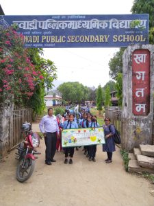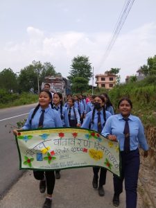 प्लास्टिक जन्य प्रदुषण लाई निर्मुल पाराैं ´´ Solution to plastic Pollution and Finding Way to Beat Plastic Pollution“ भन्ने विश्वब्यापि मुल नाराका साथ कार्यक्रममा समन्वकाे भूमिकामा रहेकाे च्वाडि बाल क्लवले विद्यालयमा गमलामा फूल राेपि कार्यक्रम सुरु गरेका थिए । साे लगत्तै प्लास्टिकजन्य प्रयाेग नगराै, रुख राेपाै वातावरण जाेगाऔं, कुहिने र नकुहिने फाेहाेर छुट्याई व्यवस्थापन गराैं लगायतका नारा र प्रदर्शन सहित कार्यक्रम स्थलमा रर्यालि सहित वडा कार्यालयमा पुगेको थिए ।