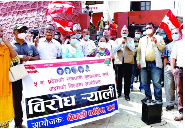 दाङ । पाल्पा प्रदेश नंं. ५ को राजधानी बुटवल कायम गर्नुपर्ने मागसहित पाल्पामा विरोध प्रदर्शन भएको छ । प्रदेश राजधानीको लागि सबै किसिमको पूर्वाधार निर्माण भईसकेको अवस्थामा अस्थायी राजधानीको रूपमा रहेको बुटवललाई नै मान्यता दिनुपर्ने मागसहित नेपाली कांग्रेस पाल्पाले विरोध ¥याली गरेको हो ।