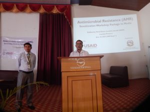 एएमआर नियन्त्रण अभियानमा खोज पत्रकारीताको माध्यमबाट मिडीया क्षेत्रको महत्वपुर्ण भूमिका रहने कार्यक्रममा बताइएको हो । महाशक्तिशाली सुच्छ्म जिबाणुहरुले मानव, पशुपंक्षि र वातावरण माथी प्रहार गरिरहेका कारण एण्टिबायोटिक औषधिहरुले पनी काम गर्न छोड्ने अबस्था आएको एक अध्ययनले देखाएका डा. बिवेका श्रेष्ठले कार्यक्रममा जानकारी दिनुभयो । मानव जगतले खाद्यान्न तरकारी पशुपंक्षिको माध्यमबाट तथा मेडिकल मार्फत जथाभावी रुपमा एण्टिबायोटिक खाईरहेको अवस्थाले भविश्य नै खतरामा पर्ने संकेत देखिएको अध्ययनले बताएको कार्यशालामा जानकारी गराइएको छ ।