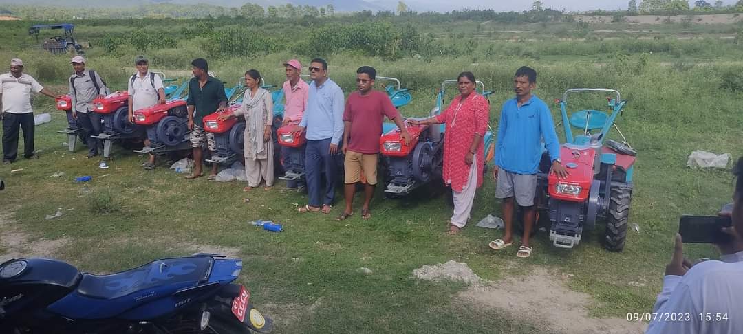 त्यस्तै शाखा प्रमुख भण्डारीले पालिका भरिका कतिपय कृषकले फम दर्ता नगरेको र उहाँहरुको डकुमेन्ट नपुगेको हुँदा उक्त पावर टिलर वितरण नगरिएको बताउनु भयो । दर्ता भएका र ५० प्रतिशत अनुदानमा ५० प्रतिशत आफुले व्यहोर्ने गरि राजी भएर आएका ८ जना कृषकलाई मात्र उक्त कृषियन्त्र वितरण गरिएको जानकारी दिनु भयो । यस्तै अन्य कृषकहरुले यसैगरी फमहरु दर्ता गरेर आएमा कृषियन्त्र दिन सकिने बताउनु भयो ।