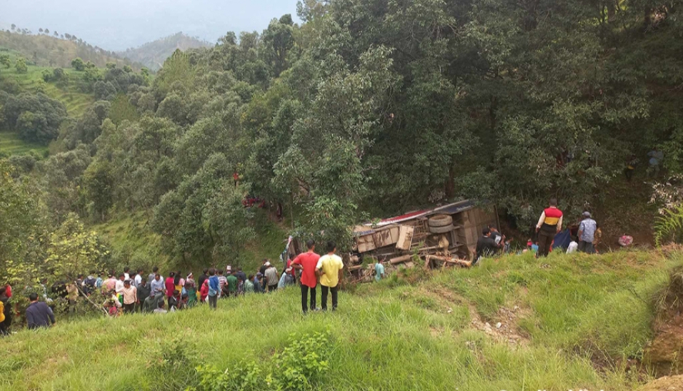 त्यस्तै उनीहरुको अवस्था गम्भीर रहेको छ । बस दुर्घटनाको कारण भने खुलेको छैन । बस सडकबाट करिब चार सय मिटर तल खसेको प्रहरीले जनाएको छ ।