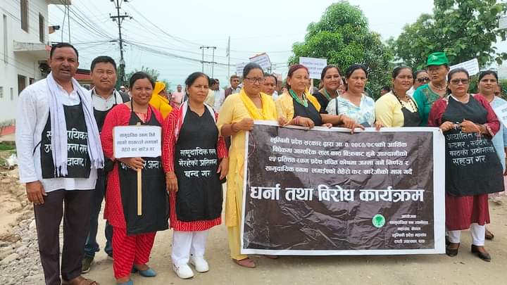 सामुदायिक वन उपभाेक्ता समुहले साल जातकाे काठ बिक्रि गर्दा आम्दानीकाे २५ प्रतिशत रकम अनिवार्य सरकारलाई बुझाउनुपर्ने निर्णयका बिरूद्ध सामुदायिक वन उपभोक्ता महासंघ लुम्बिनी प्रदेश समितीले असार २६ गते देखि चरणबद्ध आन्दाेलनकाे कार्यक्रम शुरू गरेकाे थियाे ।