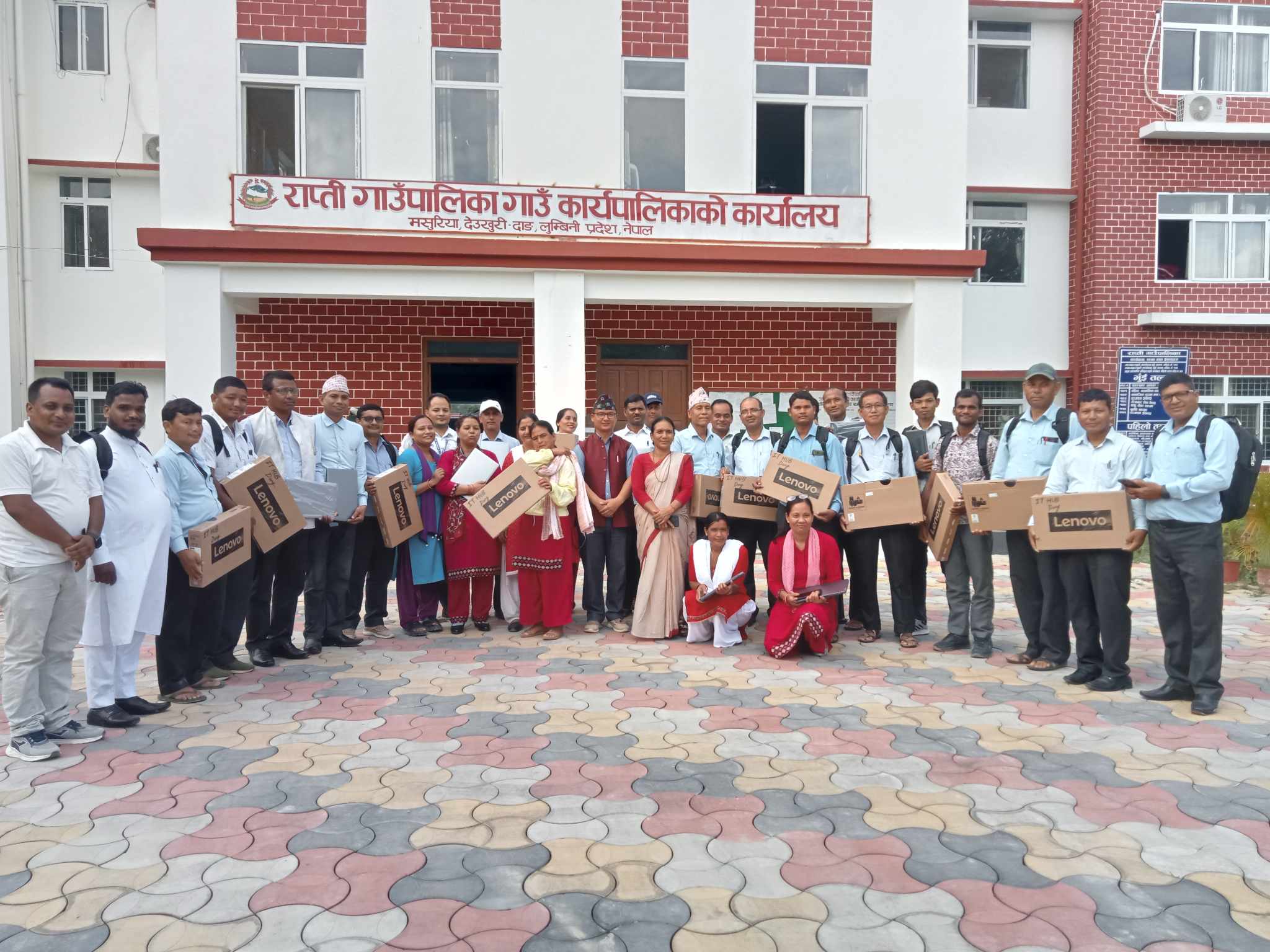 दाङ । राप्ती गाउँपालिकाले सामुदायिक विद्यालयका प्रधानाध्यापकलाई ल्यापटप वितरण गरेको छ । गाउँपालिकाले आइतबार एक कार्यक्रमको आयोजना गरी प्रधानाध्यापकलाई एक/एक थान ल्यापटप वितरण गरेको हो ।