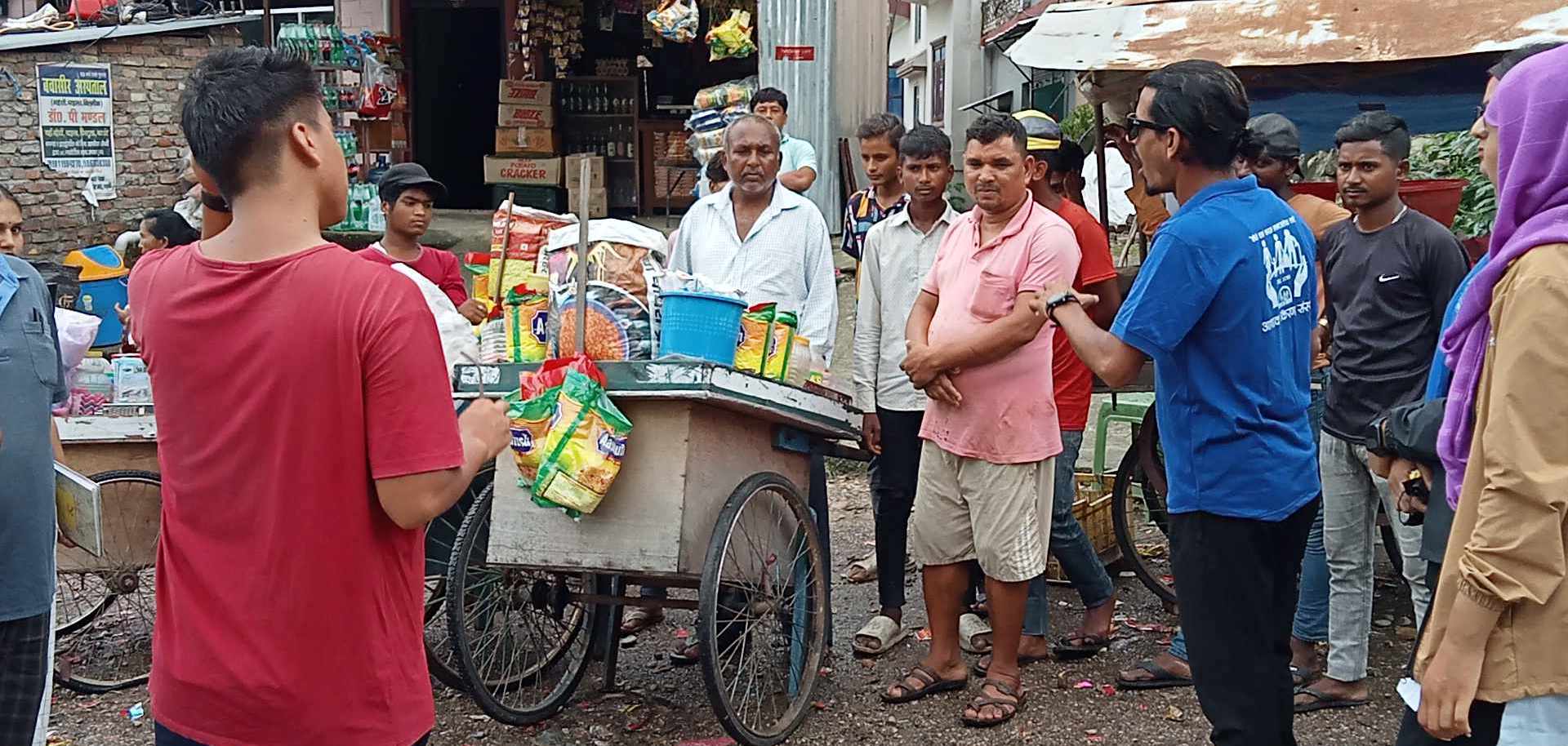 ठेलामा राखि चाट तथा पानीपुरी बिक्री गर्ने व्यापारीहरुले सरसफाईमा ध्यान नदिएको पाइए पछि उनीहरुलाई सरसफाईका बारेमा सचेत गराउन तथा आफु र खानेकुराहरु समेत सफा राखि बिक्री वितरण गर्न संस्थाका अध्यक्ष अशोक बेल्वासेले सुझाव दिएका छन् ।