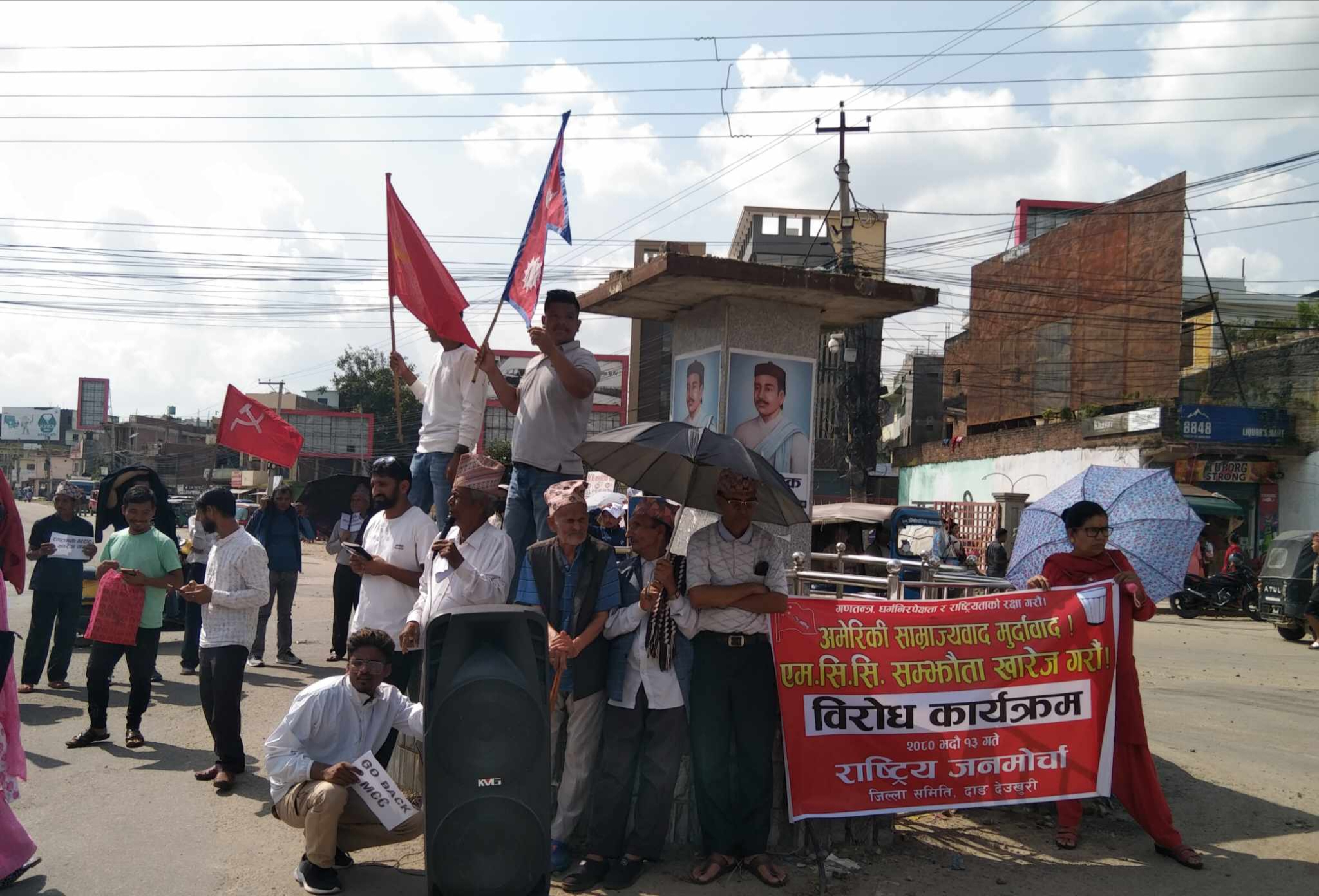 ” गणतन्त्र, धर्म निरपेक्षता र राष्ट्रियताको रक्षा गरौ! अमेरिकी साम्राज्यवाद मुर्दाबाद ! एमसीसी सम्झौता खारेज गरौ भन्ने मूल नारा घोराहीमा विरोध सभा सम्पन्न भएको हो ।
