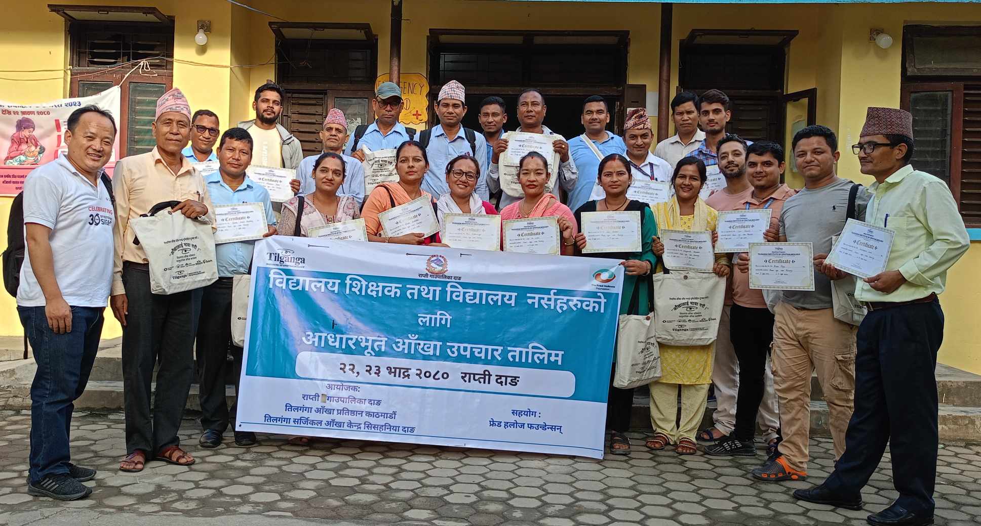 तिलगंगा सर्जिकल आँखा केन्द्र सिसहनियाँकाे आयोजना तथा राप्ती गाउँपालिकाको समन्वय र फ्रेड हलाेज फाउन्डेसनको सहयोगमा स्वास्थ्य चाैकी सिसहनियाँकाे हलमा तालिम प्रदान गरिएको हो ।