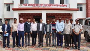 मञ्चले सोमवार राप्ती गाउँपालिकाको बैठक हलमा कार्यक्रम गरेको हो । परिचयात्मक कार्यक्रममा बोल्दै प्रमुख जिल्ला अधिकारी सुवेदीले जिल्लाबासी जनताले अनुभुती गर्ने गरि शान्ति सुरक्षा कायम गर्न निश्पक्ष, स्वतन्त्र र कसै प्रति पुर्वग्राही नराखेर सुरक्षा प्रदान गर्ने बताएका छन् ।