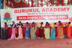घोराहीमा रहेको गुरुकुल एकेडेमीको आयोजनामा भएको उक्त साडि लगाउने प्रतियोगितामा कक्षा ७,८,९ र १०का छात्राहरु सहभागि भएका थिए ।