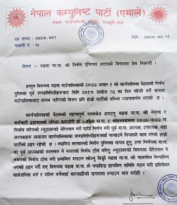 नेकपा एमाले गढवाले जारी गरेको ध्यानाकर्षण पत्र यस प्रकार रहेको छ ।