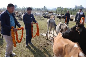 गाई पुजाको शुभ अवसरमा लुम्बिनी प्रदेश सभा सदस्य इन्द्रजित थारुले गाई संरक्षण केन्द्र गढवाको उद्घाटन गर्नु भएको हो । गाई संरक्षण तथा प्रवर्द्धन केन्द्रको उद्घाटन गर्दो प्रदेश सभा सदस्य इन्द्रजित थारुले गढवा गाउँपालिकाले पालिकाका गाईलाई व्यवस्थापन गर्न गौशालालाई ब्यवस्थित गर्ने कार्य सरहनिय भएको बताउनुभयो। ‘गाई राष्ट्रिय जनावर हो। हिन्दू परम्परा अनुसार गाईलाई पुज्ने समेत गरिन्छ तर, पछिल्लो समय यही गाई हेला बनेको देख्दा अचम्मीत हुने गरेको थारुले बताउनु भयो ‘गाई संरक्षण गर्नुपर्छ भन्ने धारणा सबैमा विकास गर्न र गौशालालाई व्यवस्थित गर्न नव गौशालाको निर्माण गर्नु उत्तम कार्य भएको बताउनुभयो। गौशाला निर्माण गरेर गाईको संरक्षणसँगै गाईको मल, मुत्रलाई औषधीको रुपमा प्रयोग गर्न गर्न सके गौशाला ब्यवस्थापनमा कुनै समस्या नहुने र रोजगारीको अवसर सिर्जना हुने बताउनु भयो।