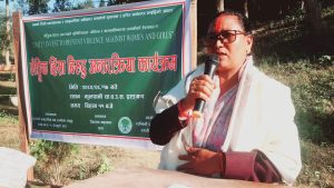 महासंघका अध्यक्ष कल्पना भण्डारीको अध्यक्षता तथा गढवा गाउँपालिकाकि उपाध्यक्ष शारदा कुमारी चौधरीको प्रमुख आतिथ्यतामा सम्पन्न भएको कार्यक्रममा प्रमुख अतिथि चौधरीले महिला हिंसा विरुद्ध नामकलाई अहिले परिवर्तन गरेर लैङ्गिक हिंसा राखिएको बताउनु भएको छ ।