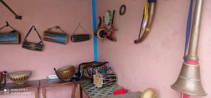 दाङ । गढवा पञ्चैबाजा कला संस्कृति संरक्षण केन्द्रका रेशम बहादुर शाही र दयाराम थापाले पञ्चैबाजा संग्रहालयको कार्यालयमा पुगेका बिद्यार्थीहरुलाई राष्ट्रिय लोकबाजाहरुबारे बिस्तृत जानकारी गराउँदै हुनुहुन्थ्यो ।
