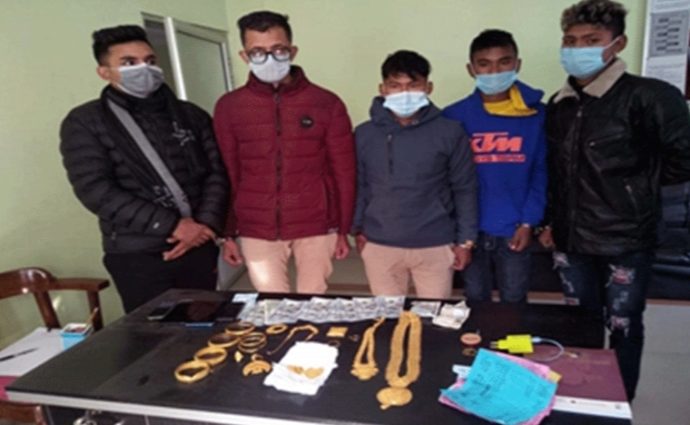 काठमाडौं । प्रहरीले ३८ तोला सुनको गहना चोरेको अभियोगमा ५ जनालाई पक्राउ गरेको छ । काभ्रेपलाञ्चोकको पाँचखाल नगरपालिका वडा नम्बर २ की माइली तामाङको घरबाट गहना चोरेर फरार भएका काभ्रेका ५ युवालाई पक्राउ गरेको महानगरीय प्रहरी परिसर काठमाडौंले जनाएको छ ।