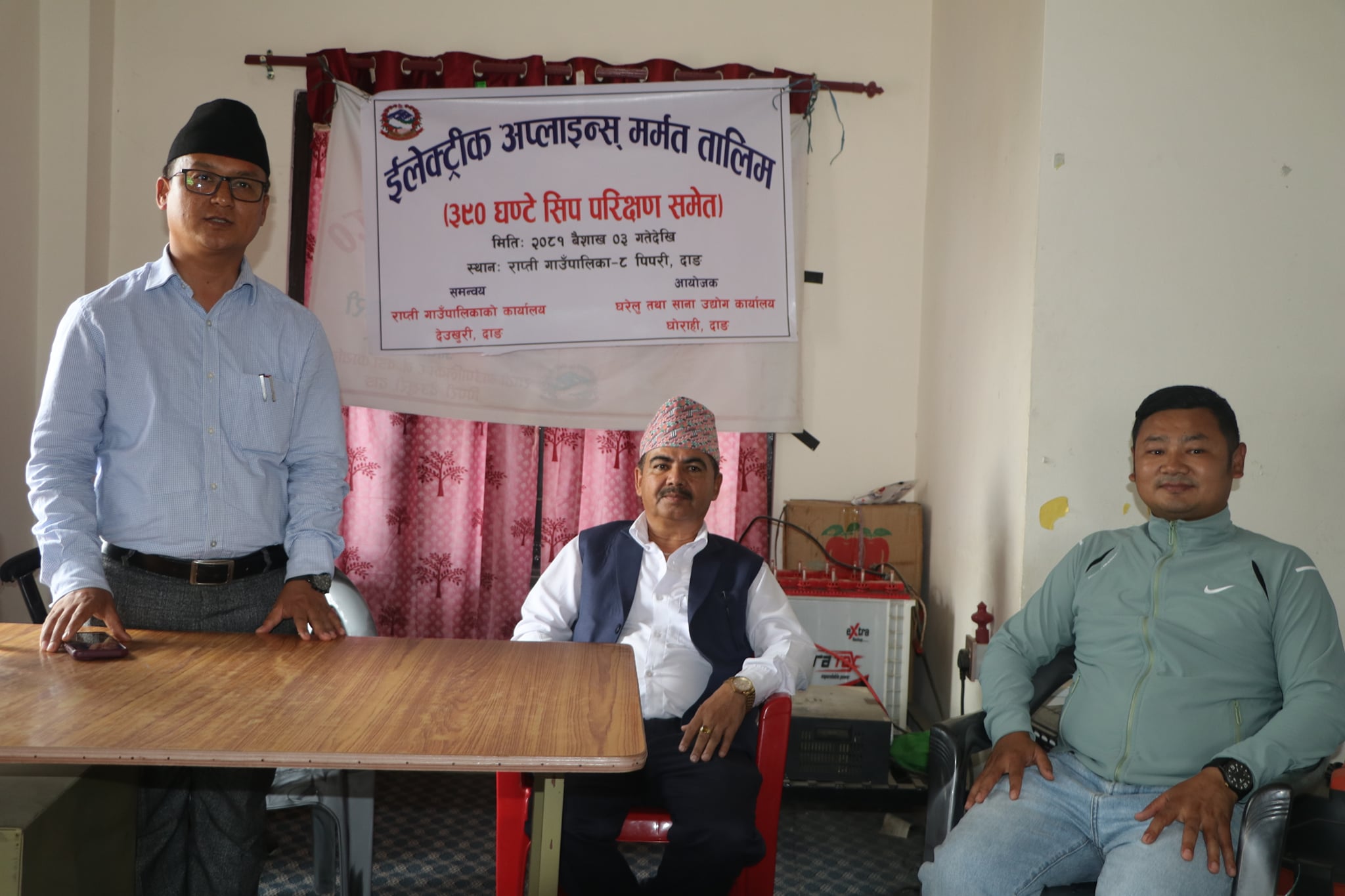 घरेलु तथा साना उद्योग कार्यालय दाङका कार्यालय प्रमुख युवराज न्याैपानेकाे अध्यक्ष तथा राप्ती गाउँपालिकाका अध्यक्ष प्रकाश विष्टको प्रमुख आतिथ्यता र वडा नम्बर ८ का वडा अध्यक्ष चन्द्रबहादुर गुरुङको विशिष्ट आतिथ्यतामा एक कार्यक्रमका बीच तालिम उद्घाटन गरिएको छ।