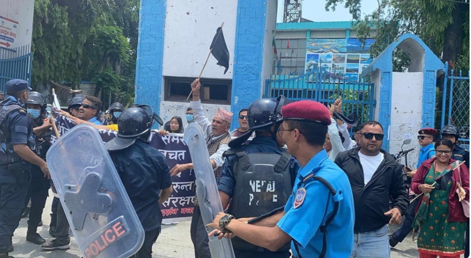 त्यस्तै उनीहरुले ‘सहकारी पीडितलाई न्याय दे’ भन्ने नारा पनि लगाएका थिए । कालो झण्डा र ब्यानर देखाउने ११ जनालाई प्रहरीले नियन्त्रणमा लिएको छ । दुई जना प्रहरीको कुटाइबाट घाइते भएका छन् । घाइतेहरुलाई उपचारका लागि अस्पताल लगिएको छ ।