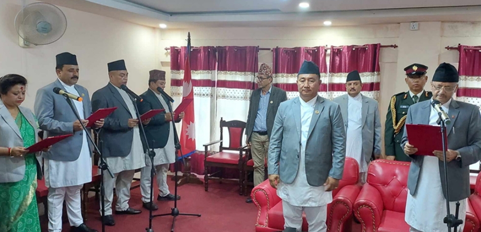 शनिवार एक समारोहका बिच मुख्यमन्त्री बहादुरसिंह लामाले नियुक्त गरेका ४ मन्त्रीले शपथ ग्रहण गरेका हुन् । प्रदेश प्रमुख यादवचन्द्र शर्माले शनिबार आज हरि प्रभा खड्गी, सुरजचन्द्र लामिछाने,मिनकृष्ण महर्जन र विमल ठकुरीलाई पद तथा गोपनीयताको शपथ गराएका हुन् ।