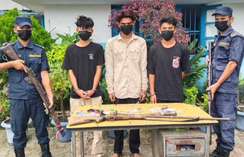 झापा । भरुवा बन्दुक र चोरीको सामानसहित तीन जना युवाहरु पक्राउ परेका छन् । यहाँको अर्जुनधारा नगरपालिका वडा नम्बर ४ स्थित देवान चोकबाट प्रहरीले भरुवा बन्दुक र चोरीको समानसहित तीन युवालाई पक्राउ गरेको हो ।
