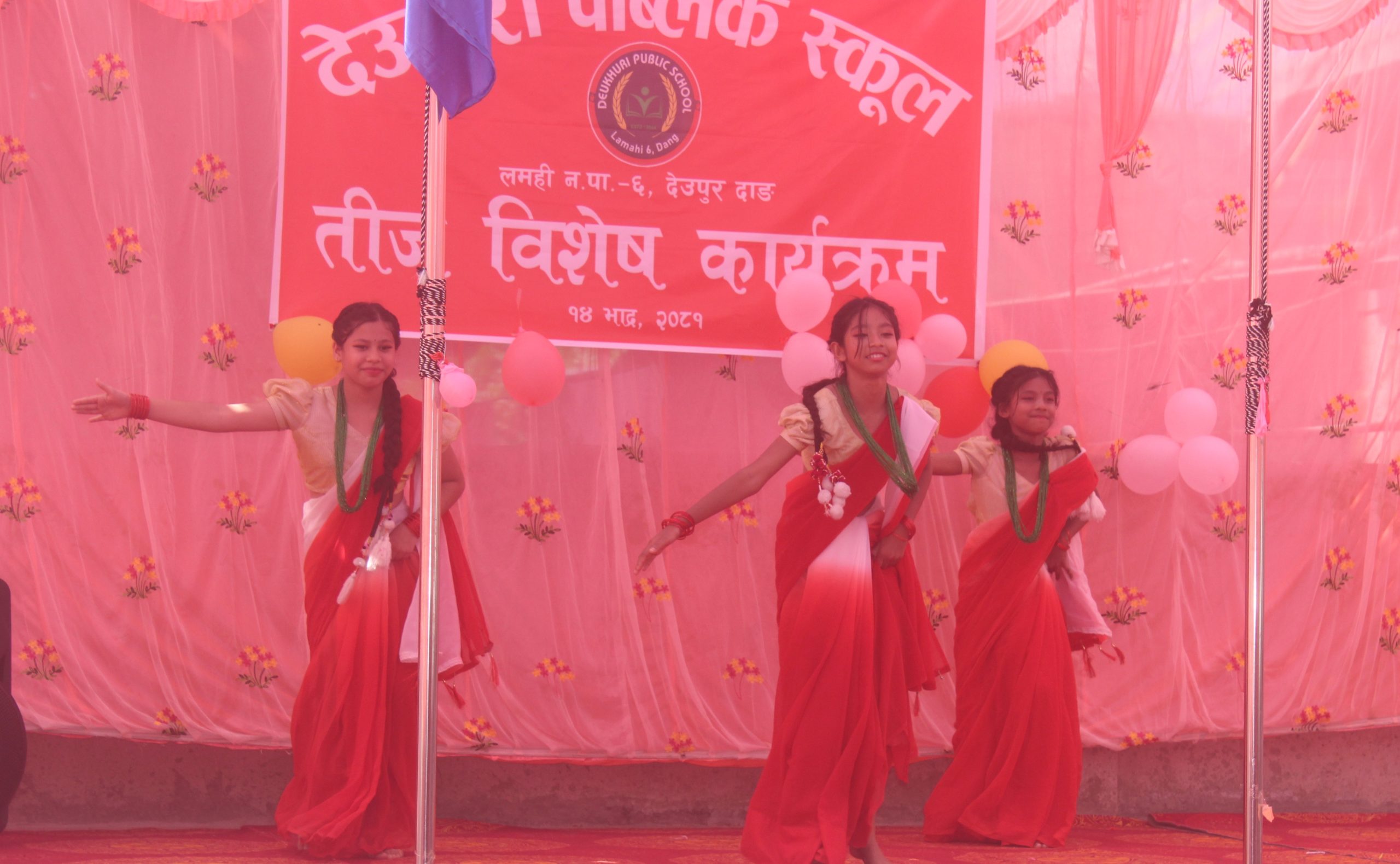 दाङ । देउखुरीको लमही नगरपालिका वडा नम्बर ६,देउपुर स्थित देउखुरी पब्लिक स्कुलले तीज विशेष कार्यक्रम शुक्रबार सम्पन्न गरेको छ ।