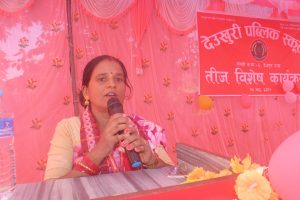 कार्यक्रमका प्रमुख अतिथि शर्माले विद्यालयका विद्यार्थीहरु लगायत अभिभावकले आफ्नो गुनियो, चोली,साडी लगाएर आफ्नो भेषभूषालाई विषेश प्राथमिकता दिएरको पाउदा आफू अत्यन्तै खुशी भएको बताइन् । यस्तै उनले आजको युगमा हरेक बालबालिकालाई सैद्धान्तिक ज्ञानसंगै व्यवहारिक ज्ञानदिन आवश्यक रहेकोे र त्यो आफुले देउखुरी पब्लिक स्कुलमा पाएकोमा असाध्यै खुशी भएको समेत बताइन् ।
