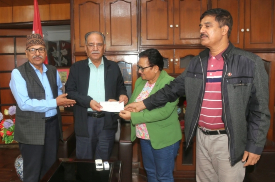 समितिका इञ्चार्ज पम्फा भुसाल र सहइञ्चार्ज ओम शर्माले आइतबार पार्टी अध्यक्ष पुष्पकमल दाहाल प्रचण्डलाई पाँच लाख रुपैयाँको चेक हस्तान्तरण गरेका हुन् । सो अवसरमा प्रवास समन्वय समितिको कार्यालयका मुख्य सचिव टिबी पाठकको पनि उपस्थिति रहेको थियो ।