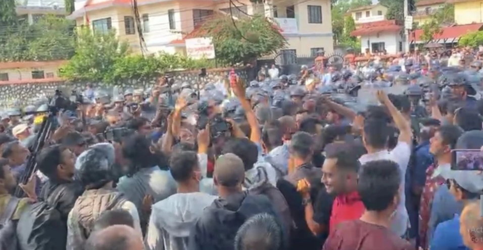 निषेधाज्ञाका बिच रास्वपाको प्रदर्शन हुँदा प्रहरी र प्रदर्शनकारी बीच घम्साघम्सी भएको छ । प्रहरीले भीडलाई अघि बढ्न दिएको छैन भने प्रदर्शनकारीले चर्का नारबाजी गर्दै प्रदर्शन गरिरहेका छन् ।