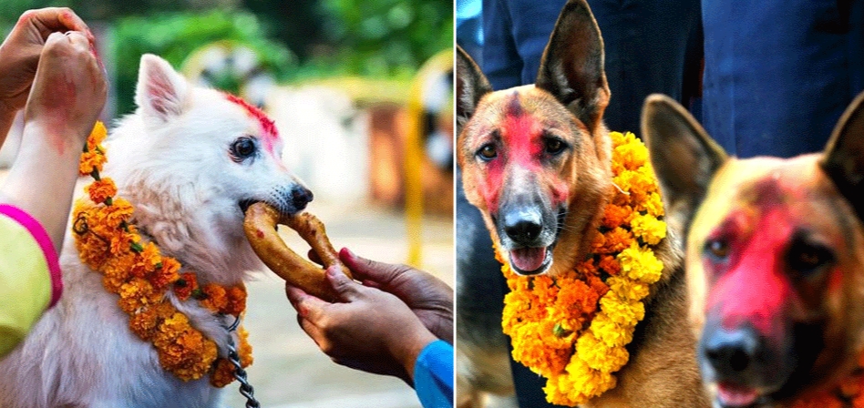 काठमाडौँ । नेपालीहरुको दोस्रो ठूलो चाड तिहारको तेस्रो दिन आज घर घरमा सुरक्षा गर्ने कुकुरलाई पूजा आराधनासहित मीठा-मीठा खानेकुरा खान दिएर सम्मान गरी भव्य साथ मनाइँदै छ ।