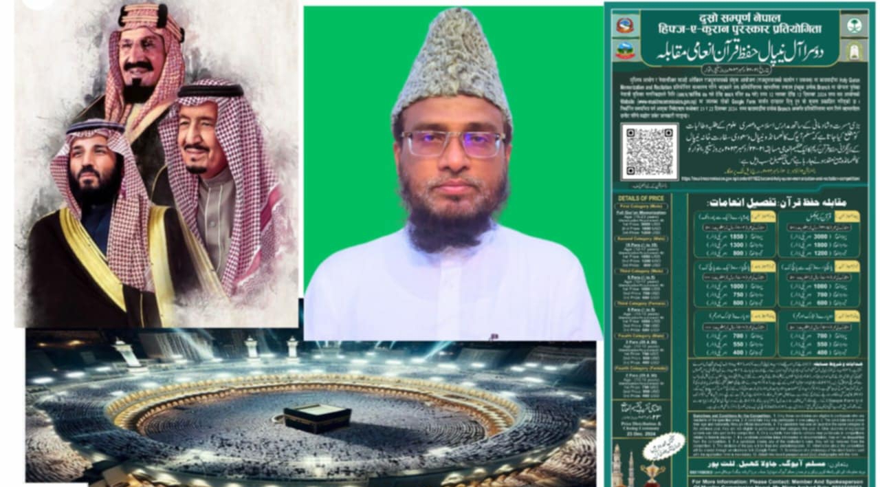 काठमाडौं । साउदी अरबको इस्लामी मामिला,दावत र मार्गदर्शन मन्त्रालयको आयोजनामा दोस्रो अल नेपाल हिफ्ज़-ए-क़ुरान प्रतियोगिता २१ देखि २३ डिसेम्बरसम्म काठमाडौँमा हुन गइरहेको छ ।