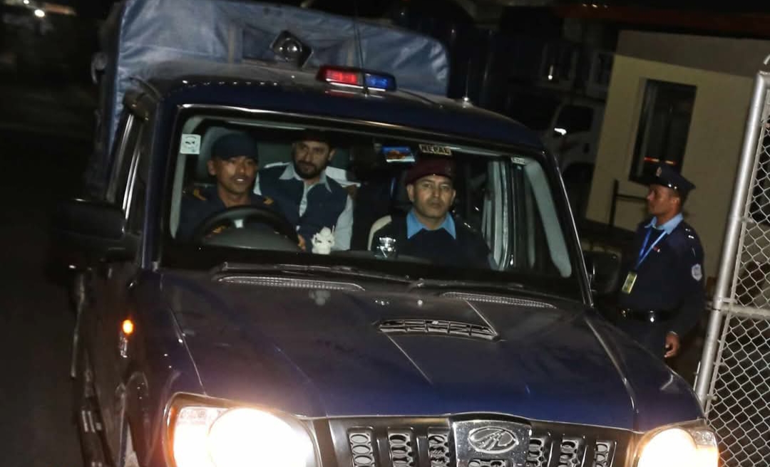 त्यस्तै त्रिभुवन अन्तर्राष्ट्रिय विमानस्थलको आन्तरिक टर्मिनलबाट उनलाई सोझै जिल्ला प्रहरी कार्यालय परिसर भद्रकाली लगिएको छ । सुरक्षालाई मध्यनजर राख्दै जिल्ला प्रहरी परिसर क्षेत्र वरपर बाक्लो सुरक्षाकर्मी परिचालन गरिएको छ ।