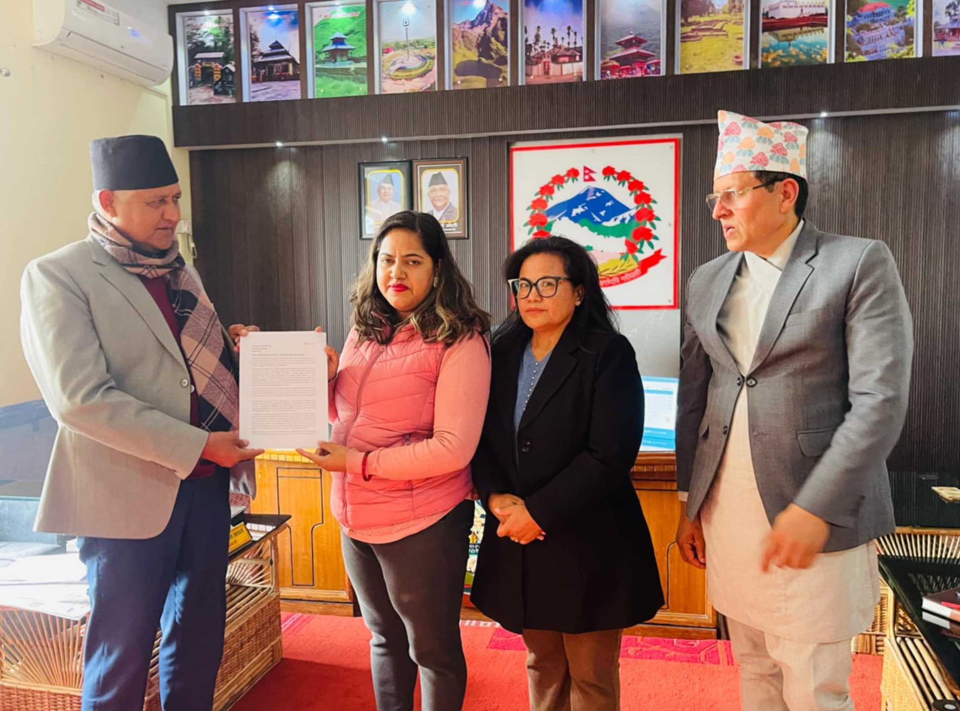 मुख्यमन्त्री आचार्य र प्रमुख सचिव बावुराम अधिकारीलाई सृजनशील नेपालका कोषाध्यक्ष खुमकुमारी थापा र कार्यक्रम अधिकृत सुना न्यौपानेले ३० वटा संघ-संस्थाका प्रतिनिधिको तर्फबाट ज्ञापनपत्र बुझाएका थिए ।