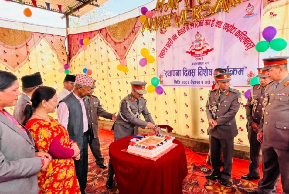 दाङ । सशस्त्र प्रहरी बल नेपाल, नं. ४१ रिजर्भ गण हेडक्वाटर चन्द्रौटा, कपिलवस्तु (अर्जुन खोला,दाङ) ले पन्ध्रौं स्थापना दिवस मनाएको छ ।
