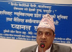 प्रदेश स्तरीय किशोरी सञ्जालका सबैभन्दा कान्छी अभियन्ता १३ बर्षिय किशारी प्रतिभा थापाको अध्यक्षता र लुम्बिनी प्रदेश सरकारका सामाजिक बिकास मन्त्री जन्मजय तिमिल्सीनाको प्रमुख आतिथ्यका कार्यक्रम गरिएको हो । कार्यक्रममा बोल्दै प्रमुख अतिथी तिमिल्सीनाले वालविवाह न्यूनीकरण गर्न प्रदेश सरकारले दशबर्षे रणनितिक योजना बनाईसकेको र त्यसलाई कार्यान्वय गर्दैजाने प्रतिवद्धता जनाए ।